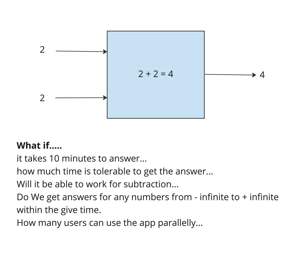 Let’s take an example of developing an app to add two numbers. Now, it looks pretty straightforward problem, but when we define the software design problem, the following questions surround us. These questions are to be gathered by stockholders.